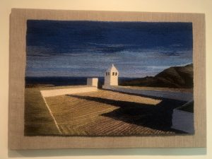 2004, 20″ x 30″, 7.5 epi. Cotton seine twine warp, wool weft. A memory of my trip to Greece in 1976.