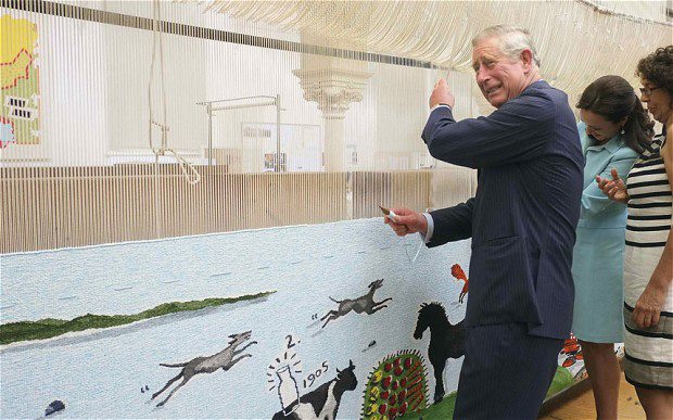 Prince Charles trying his hand at tapestry at the Australian Tapestry Workshop in Melbourne. Really! It’s not that scary! Actually, I’m sure he’s hamming it up for the press. He is a wonderful supporter of the wool industry.