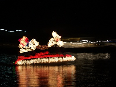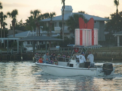 Well, we are really getting in the spirit down here, in spite of palm trees, mangroves, and dolphins! The lights of St. Augustine are about as festive as you could see anywhere, and in New Smyrna we were treated to a Christmas parade of boats!
