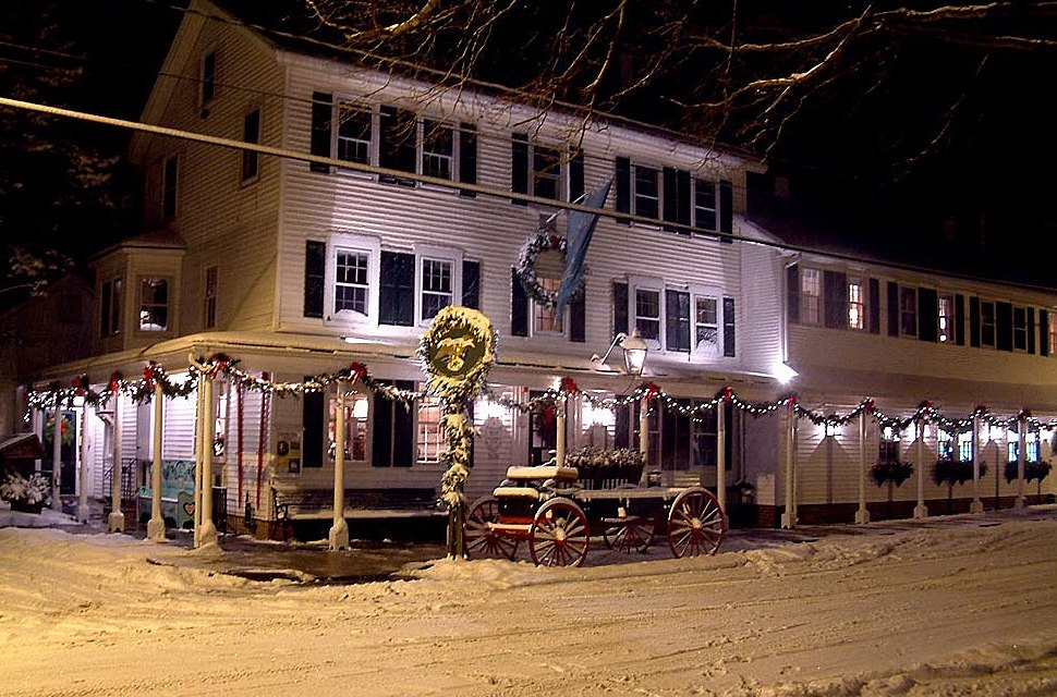 Our return home was truly magical, and our first Christmas here has been wonderful!….complete with a powdered sugar dusting of snow on Christmas Eve! This is not my house, but a well known inn in our little town…. photo taken by Mark Cappitella.
