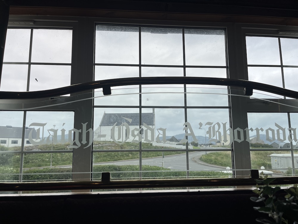 Welcome to Bhorrodale on Uist. This is the window in the pub. The dining room was closed while we were there, but the pub was a charming spot for our dinners.