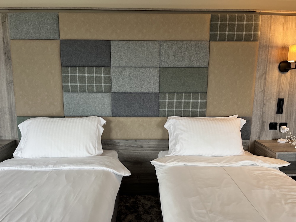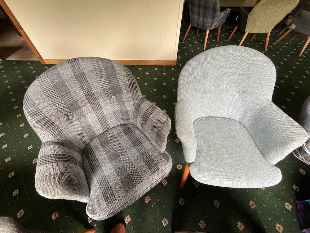 Off we headed to our last island destination, the dual island of Harris and Lewis. If ever there was a celebration of Harris Tweed, this is the place to enjoy it. Now you might well think I’ve taken leave of my senses. I went a bit overboard taking photos of Harris Tweed on every chair and wall that I came across during our stay! This is the wall in our room at the Hotel Hebrides.