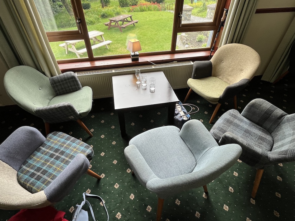 When we arrived we decided to have afternoon tea at a lovely spot within walking distance of our lodging. This is the Inn at Harris. We enjoyed the gardens along with Harris Tweed decorated dining room.