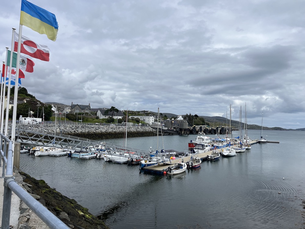 I took a walk along the harbor on my way back to the Harris Inn. There is a very small marina. It is a late July day, and it’s quite chilly. I really cannot imagine visiting here by boat, but clearly a few other hardy souls are doing it. I wish Bob could have joined me here. He would have gone straight down onto the dock to meet some of these sailors.