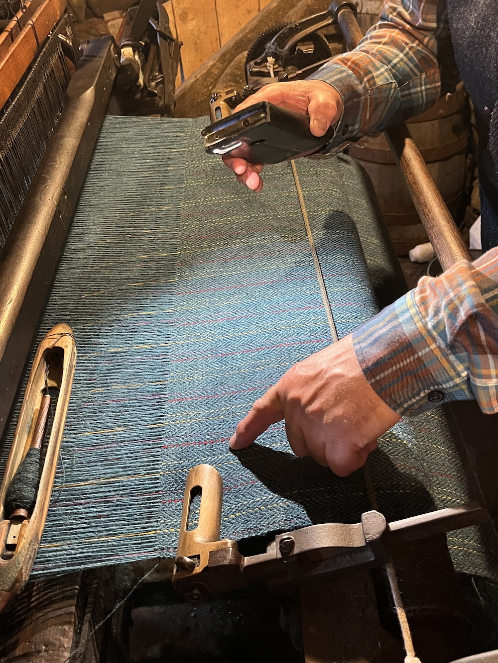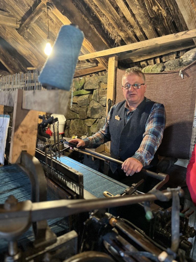 We are inside the black house where there are several docents who are friends of our guide (Tom MacMurray), and where his loom resides in a separate building. This particular house has been left with items from its last occupants, in the 1950s. These houses date much earlier but were in continuous use for centuries.