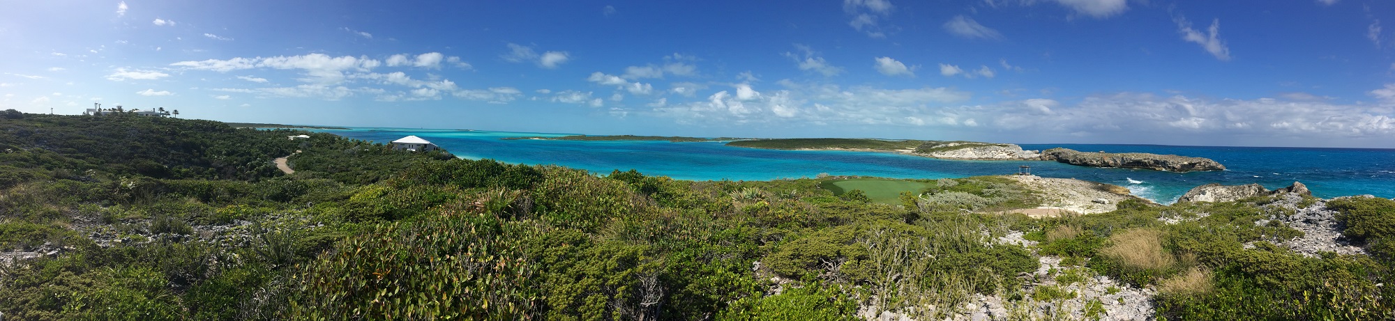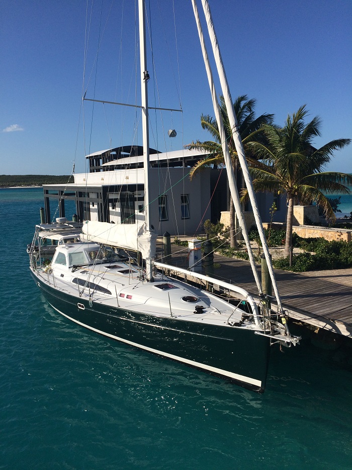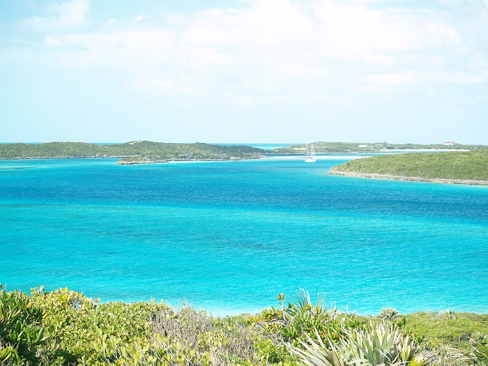 Pandora at anchor from about half way up the hill at Hotel Brisas.