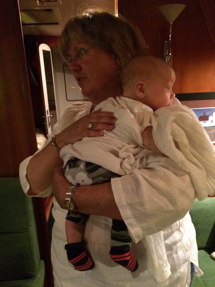 We have only seen one or two boats when we are out sailing, and it’s no surprise that we end up in the same harbor every few days. There are so few harbors along this coast it is inevitable. The boats we’ve seen are all flying Norwegian flags. Last night we invited our neighbor Lars to dinner, after a long hot day with no wind we were all too tired to make much of an effort for dinner, and I think he was happy to have me doctor up some leftover rice with a bit of vege and egg and cheese. Lars has been living aboard his very pretty double ender, Luna, for more than 12 years. He has sailed around the world and has been in the Caribbean several times.