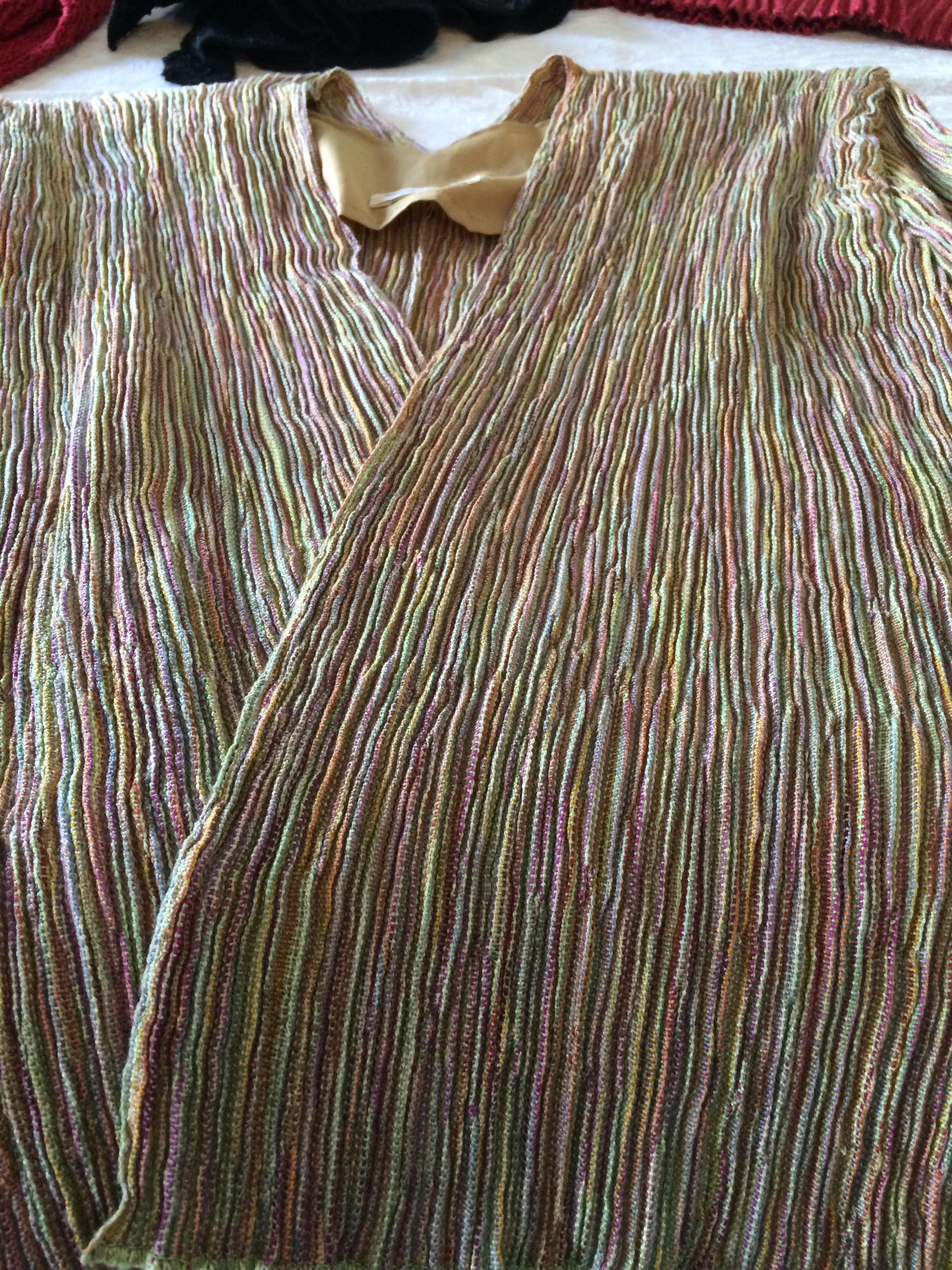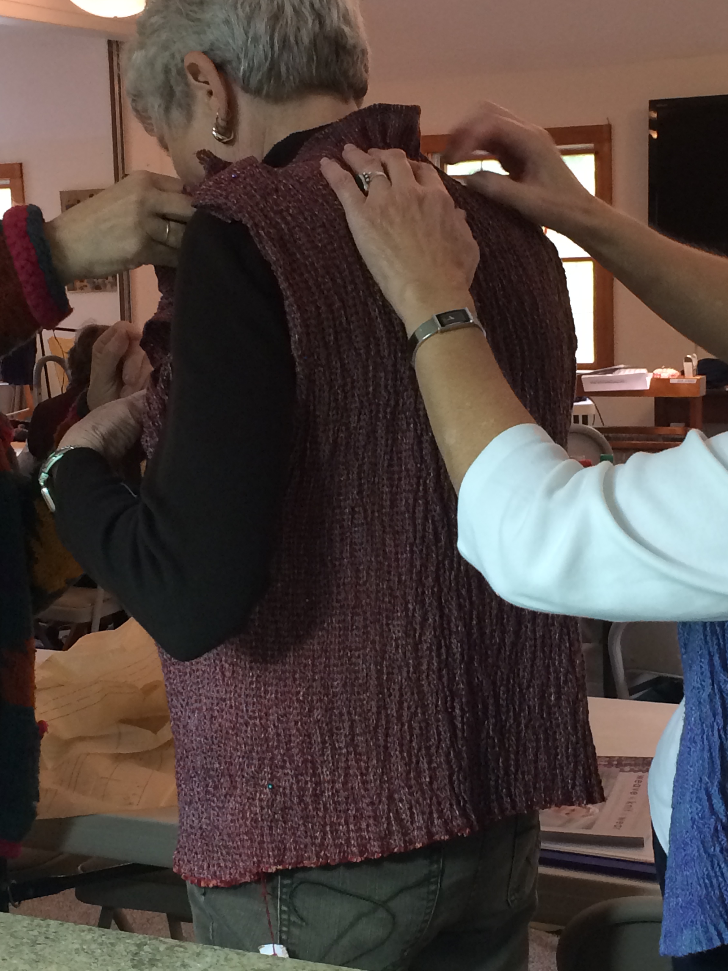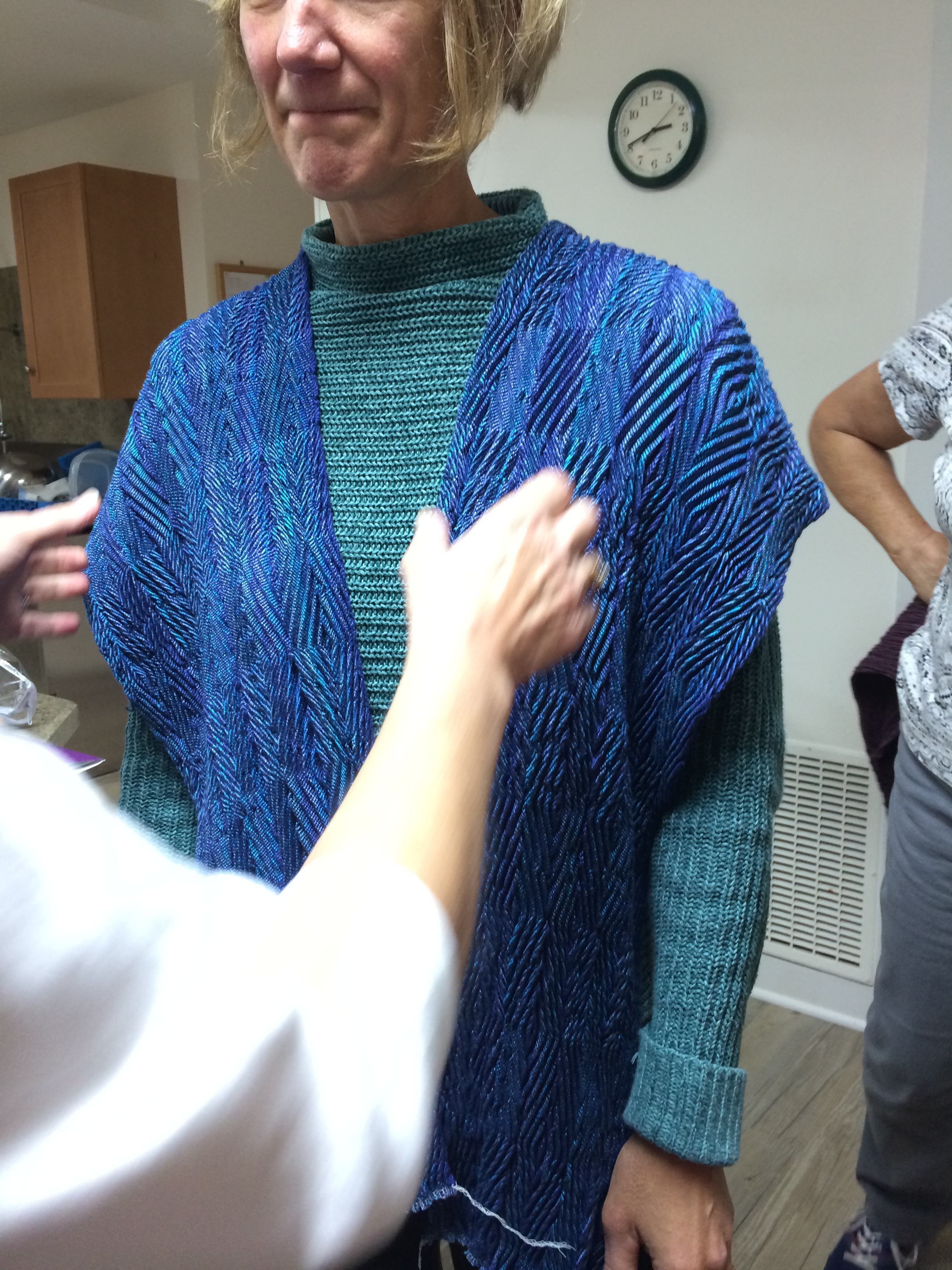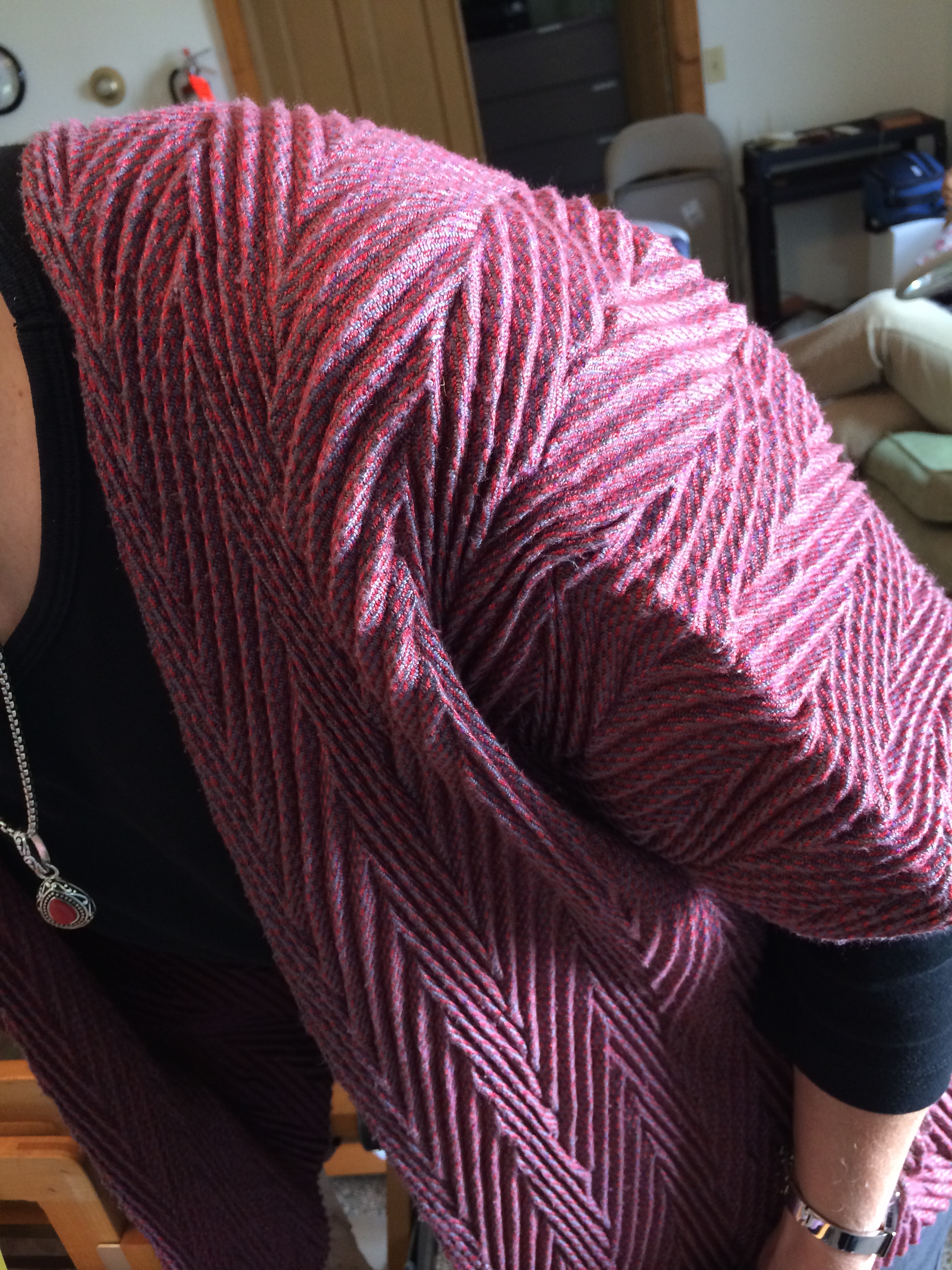 I want to wear this sweater to a wedding in the spring. The wedding is 3 months away, which may sound like ages….but not in my circumstances! I need to know if the sweater will be flattering on me with enough time left over to determine if I can find anything to wear with it as we travel south along the coast. That’s a tall order! So 3 months is not that much time to pull an outfit together from a boat! I don’t have the luxury of a car, so I only have access to whatever is available in the little shops along the coast. Mostly these shops have beautiful clothing for beautiful people…..who wear a size 2!