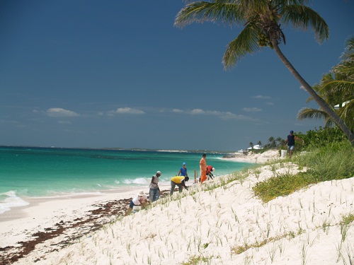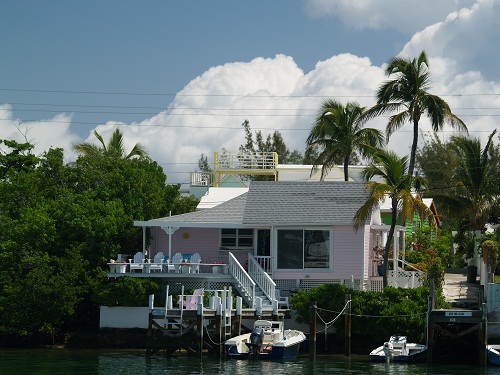 On several islands we visited there was a salt water pond with a shallow lens of fresh water on top, salt water being heavier than fresh. This lens of water is carefully tapped each day by the residents. On Rum Cay, someone would deliver a big tank of fresh water to the marina on the back of a flat bed truck several times a week. It had to be carefully rationed out to the boats in the marina at $.45 a gallon. I watched the local fisherman clean an entire day’s catch with only a small bucket of fresh water. Everyone knows how to conserve in these islands.