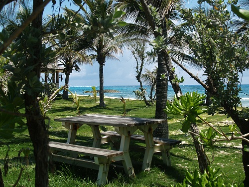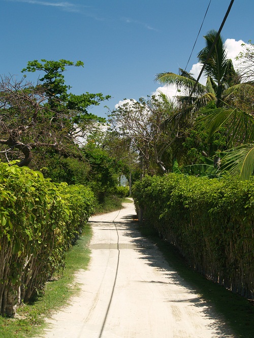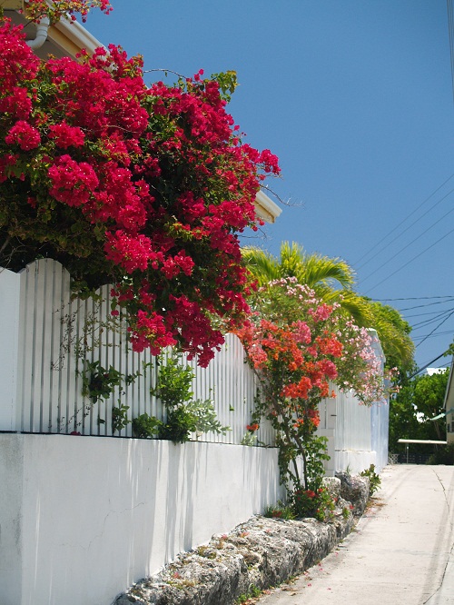 Passing the cemetery on our walk, we were drawn through the gates by the lovely view of aquamarine waters, a ring of reefs, and distant islands. The grave markers were all recently whitewashed and many graves had flowers in bloom… bougainvillea, gaillardia, portulaca, lantana. That’s when we noticed a little tent with chairs underneath, placed near a freshly dug hole in the ground. Looks like funeral preparations were going on right down the street from the wedding preparations.