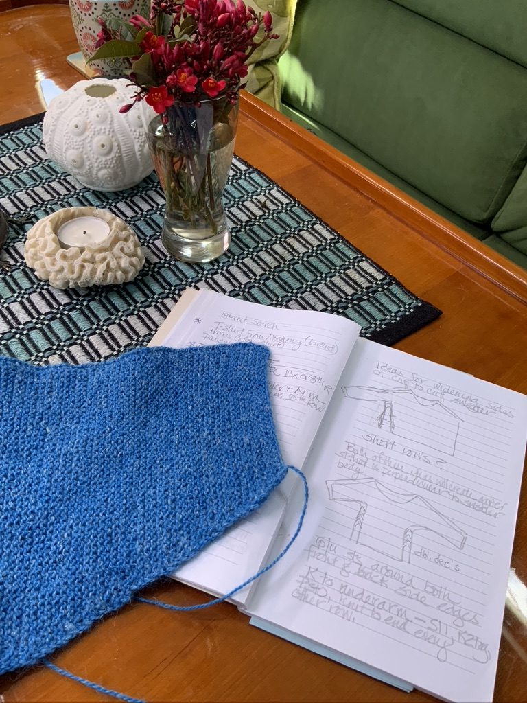 To come back to knitting with the cotton yarn I had set aside, as luck would have it I saw a tempting pattern in an email from an Australian dyer. She offers patterns to go with her locally sourced Australian yarns that she dyes. This is also a vest pattern, or a simple top to be worn on its own, designed by Elenor Mortensen. It’s called “Eowyn Tee.”