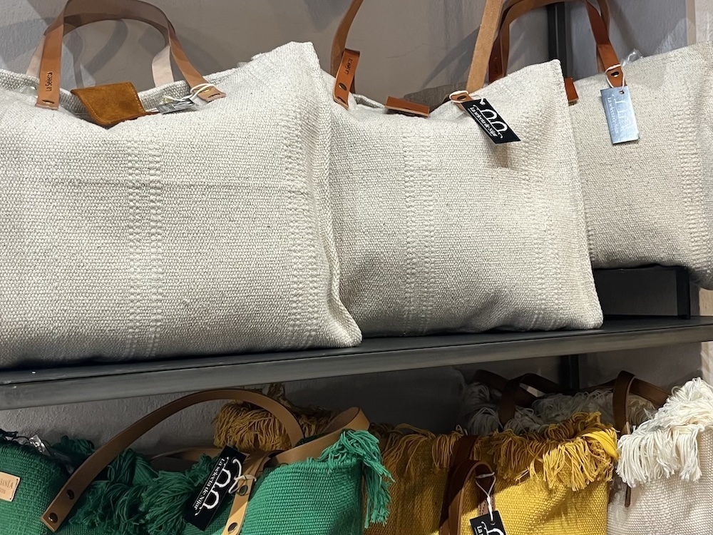 There are tags on the tote bags I bought, so I asked the woman waiting on me if she is Isabel. She showed me a group photo on the wall and pointed to Isabel. Why didn’t I ask her name? I learned that she weaves the many handbags and tote bags that have the loop weave, yet I didn’t think to get her name. Hugely disaapointed about that.