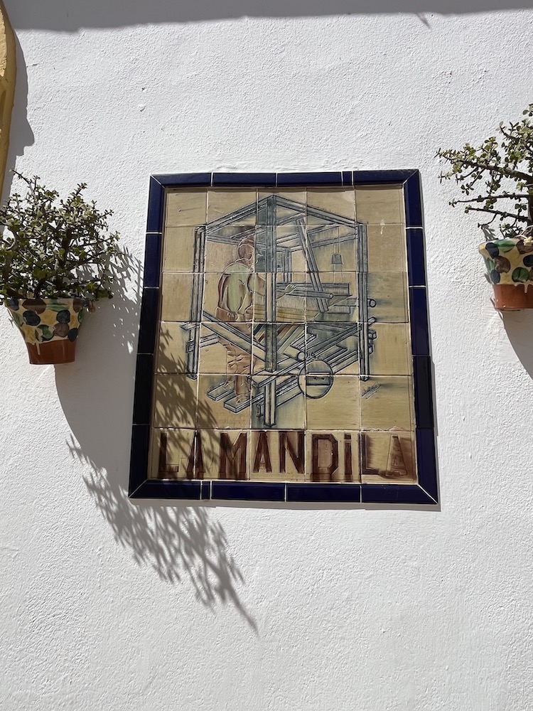 Last year Bob and I had driven to Nijar, a bit east of Almeria to look for weavers. Yesterday I found all the same places! Last year I regretted not buying a handwoven tote bag from one of the shops in Nijar, and I was hoping to find it again, still full of choices. And we did! I remembered an entirely different shop, but Bob was convinced it was a place I don’t even remember seeing last year–that is until I walked inside. Then I was certain we’d found the place, and what a thrill that was. The same tile work outside the shop.