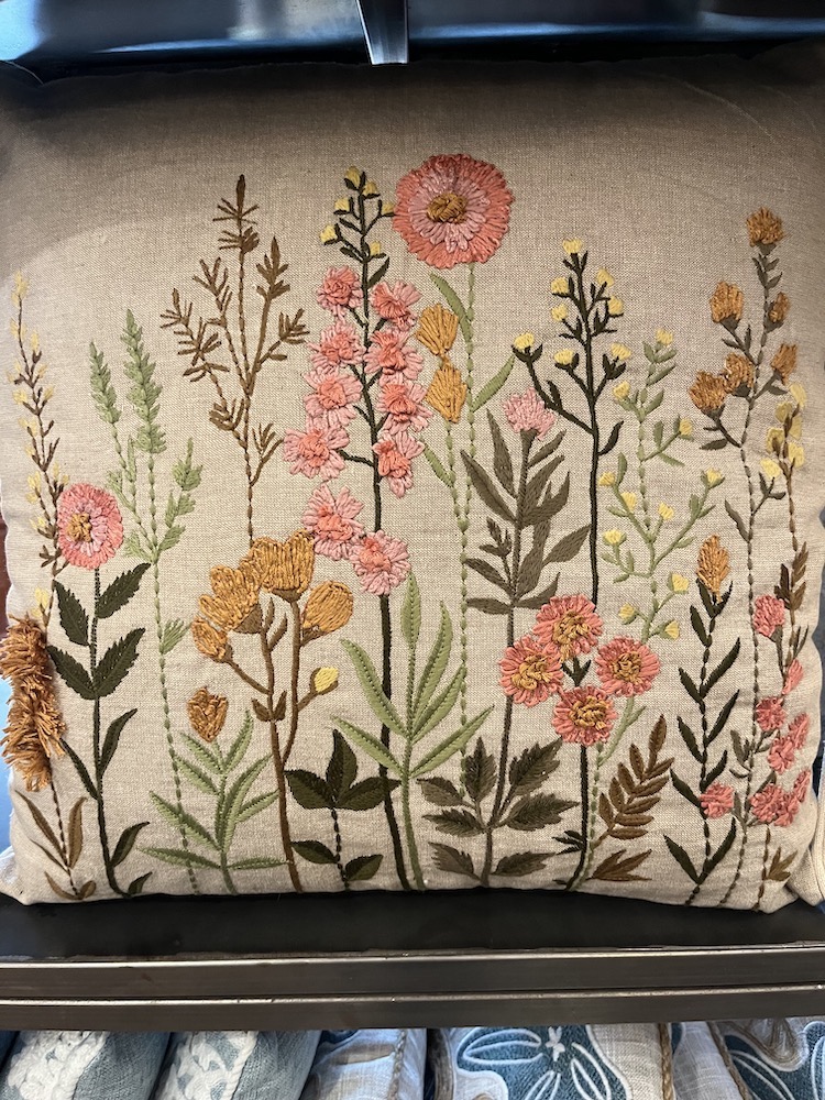 There were also lovely hand embroidered pillows, and a remarkable collection of baskets. Just a reminder–both baskets and handwoven tapestry can still only be made by hand. There are no machines that can weave tapestry or baskets.