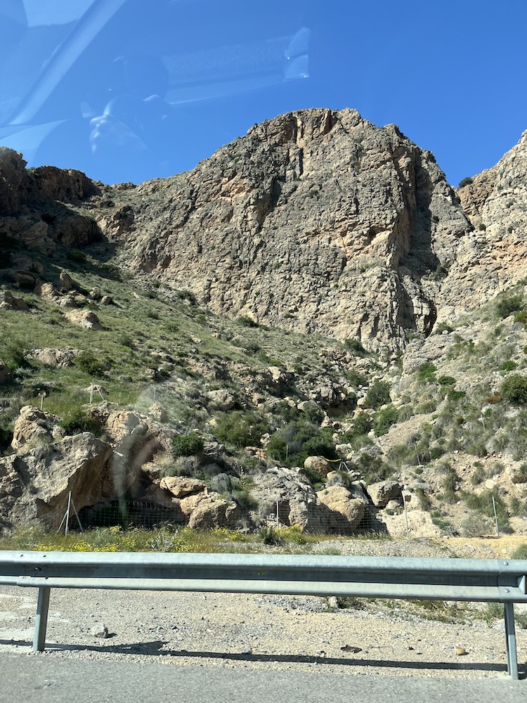 But on more positive subjects, this is almost a perfect time to be on the Costa del Sol. The sun is brilliant, while the temps are quite cool, so I am wearing sweaters every day! At this time of year–late winter/early spring– the winds are very strong, coming down from the mountains. Since this is desert, there is fine sand everywhere. Sometimes the mountains are shrouded in a cloud of sand somewhat similar to fog.